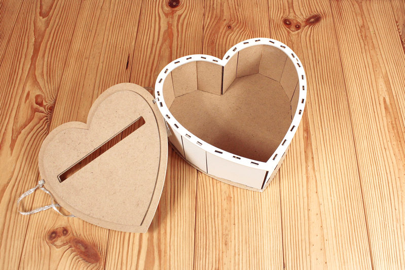 Б171-02-0302 Семейный банк "Сердце" (23*21,5*10) МДФ 3мм, окрашен., оформл., Белый-серебро, 1 шт.