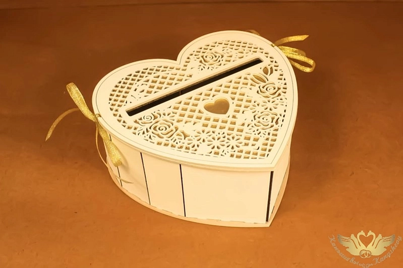 Семейный банк "Сердце" (23*21,5*10) МДФ 3мм, окрашен., оформл., Шампань пастель-золото, 1 шт.