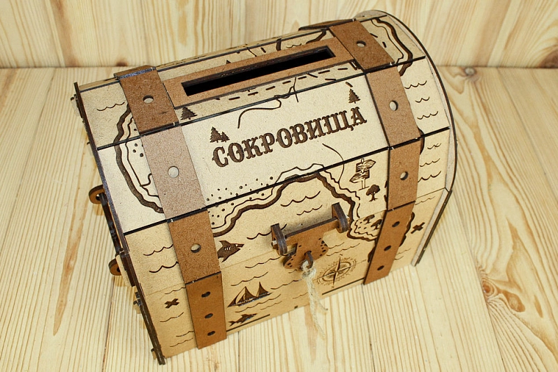 Семейный банк-сундук "Сокровища" (32*22*23,5) МДФ 3мм, окрашен. морилкой, оформл., Орех-мокко, 1 шт.