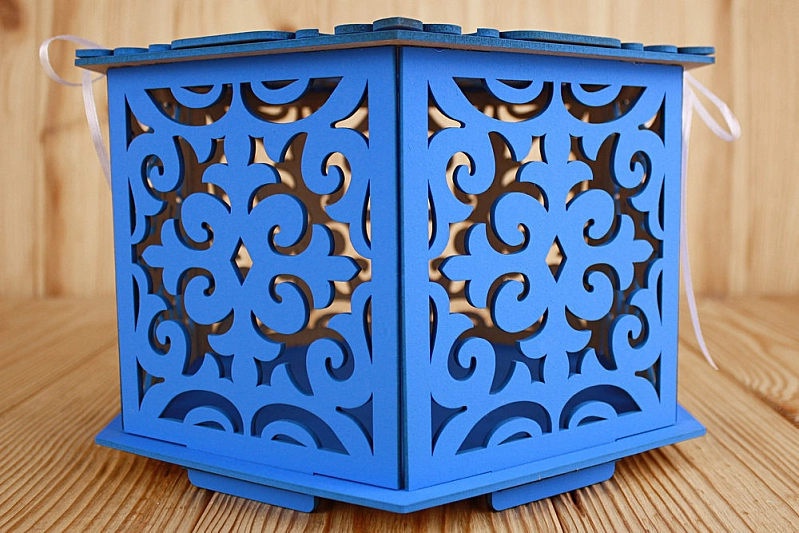 Б160-02-0803 Семейный банк "Восточный" (25*29*17) МДФ 3мм, окрашен., оформл., Синий-белый, 1 шт.