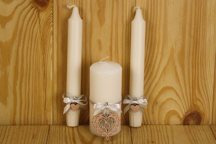 Свечи трио "Ажурные" (10*19) Свечи, оформл., Пудровый-белый, Набор 3 шт