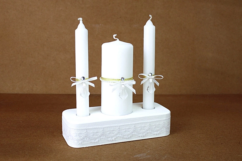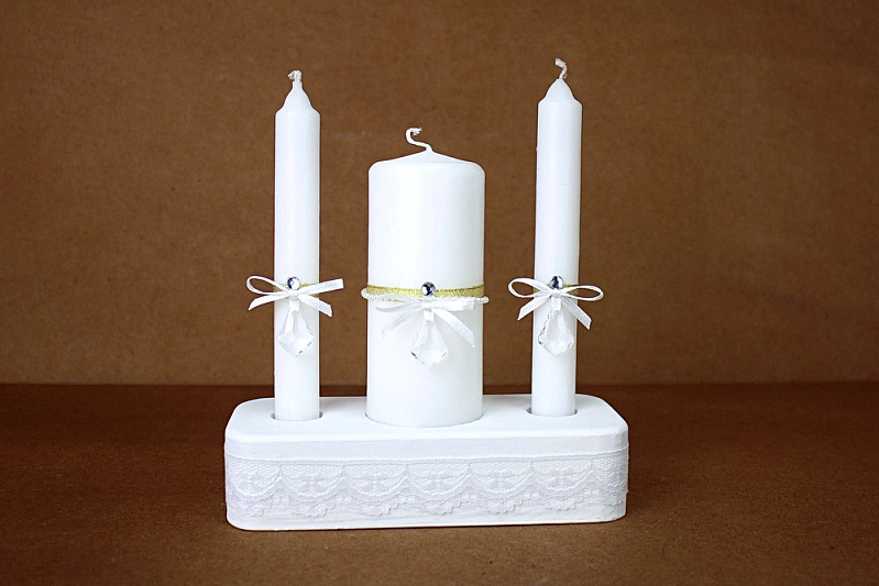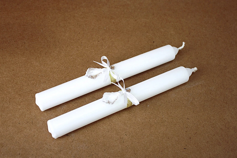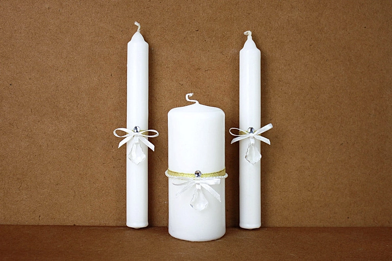Свечи трио "Кристалл" (5*11,5см-1шт; 2,5*19см-2шт) Свечи, оформл., Белый-золото, Набор 3 шт.