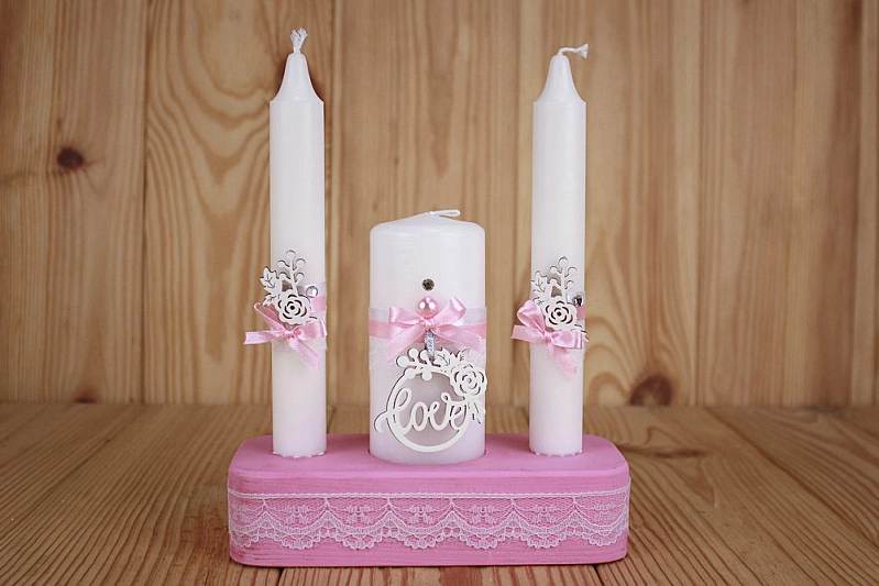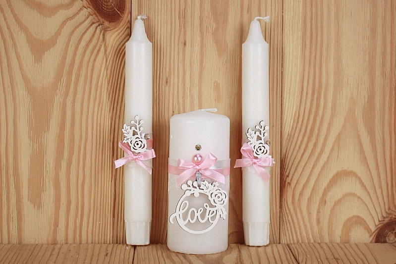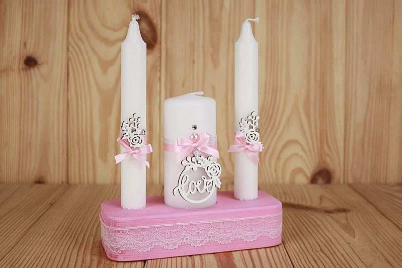 Свечи трио "Романтика" (5*11,5см-1шт; 2,5*19см-2шт) Свечи, оформл., Розовый-серебро, Набор 3 шт.