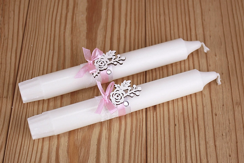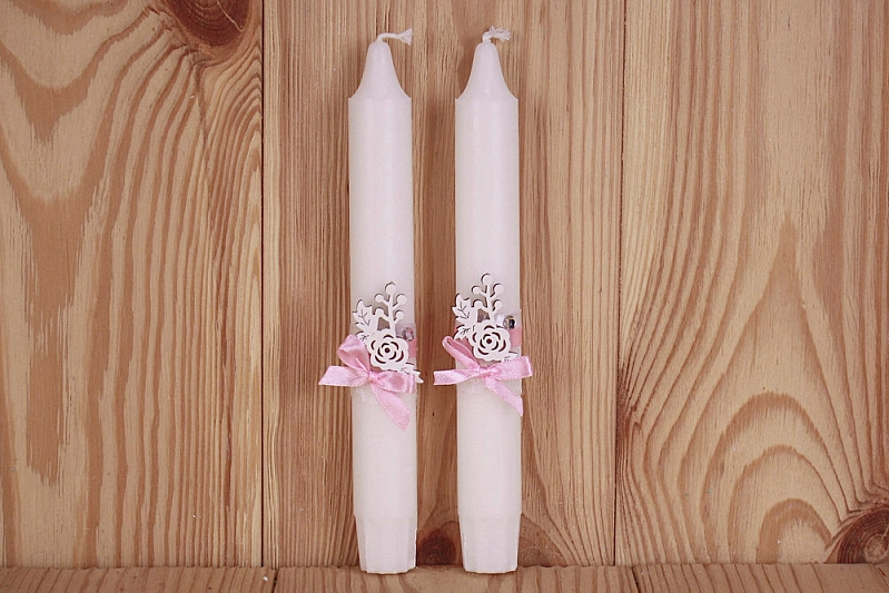 СвНб36-40-0502 Свечи трио "Романтика" (5*11,5см-1шт; 2,5*19см-2шт) Свечи, оформл., Розовый-серебро, Набор 3 шт.
