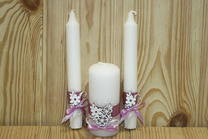 Свечи трио с цветами (10*19) Свечи, оформл., Лавандовый-белый, Набор 3 шт