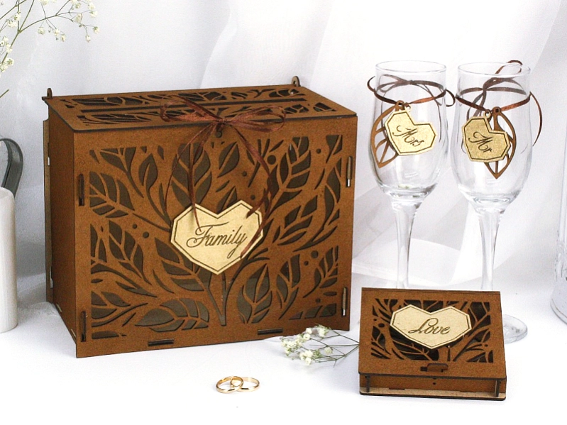 Б218-02-3701 Набор украшений на бокалы "Стильный" (5*3,5) МДФ, окрашен. морилкой, оформл., Дуб-золото, Набор 2 шт.