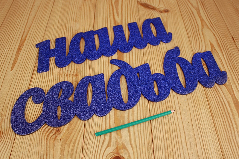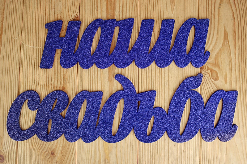 Надпись "Наша свадьба" №1 (86*0,3*14,5) МДФ 3мм, оформл. блёстки, Синий, 1 шт.
