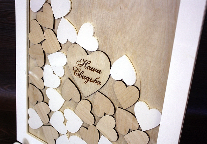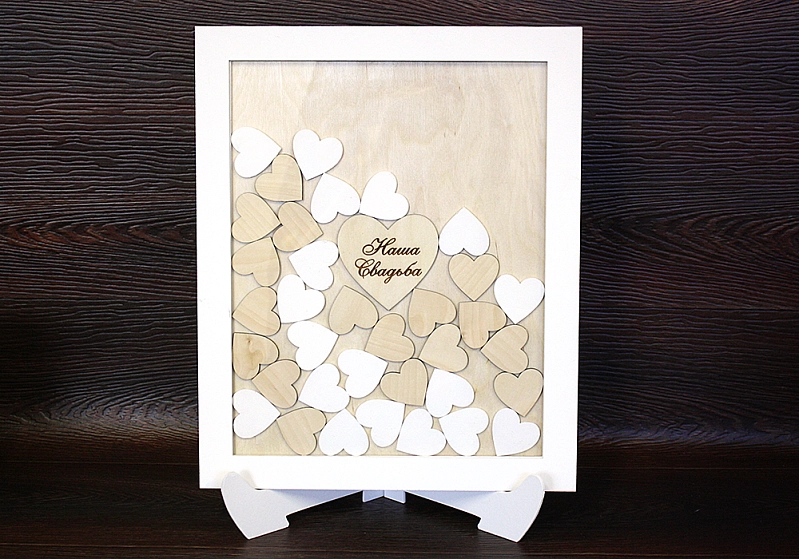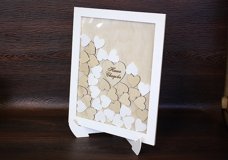 Сув474-02-0300 Свадебный аксессуар "Рамка пожеланий" с сердечками (35*43) Фанера 3мм, МДФ 3мм, окрашен., оформл., Белый, 1 шт.