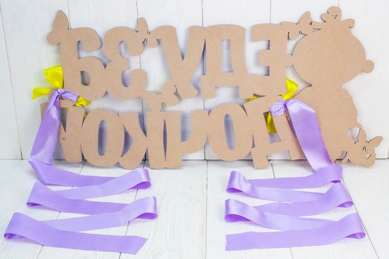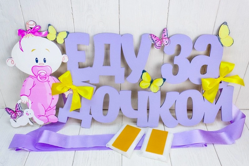На украшении изображена надпись "Еду за дочкой" и очаровательная лялька, выполненные с помощью УФ-печати. Яркие сиреневые и желтые цвета добавят позитива и уюта в интерьер. 🌸