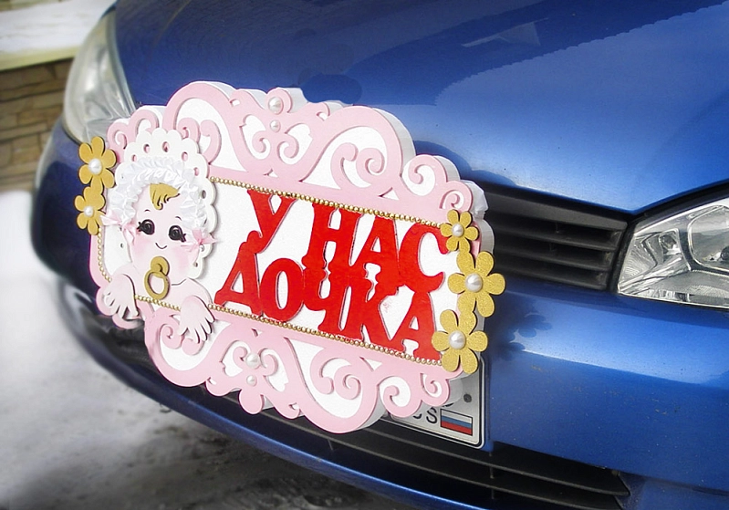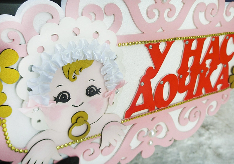 Украшение на радиатор "У нас дочка" (шир.65см;выс.38см) Белый-розовый, 1 шт.