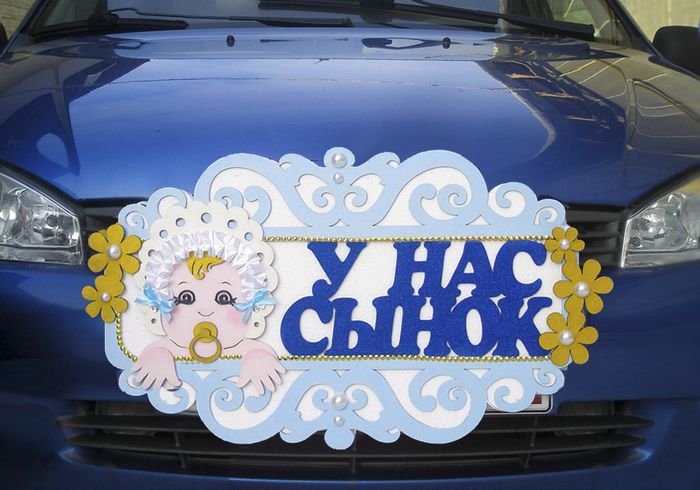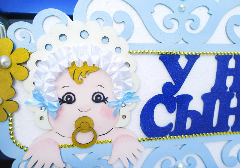Украшение на радиатор "У нас сынок" (шир.65см;выс.38см) Белый-голубой, 1 шт.
