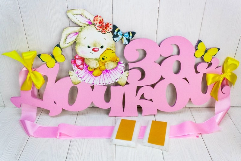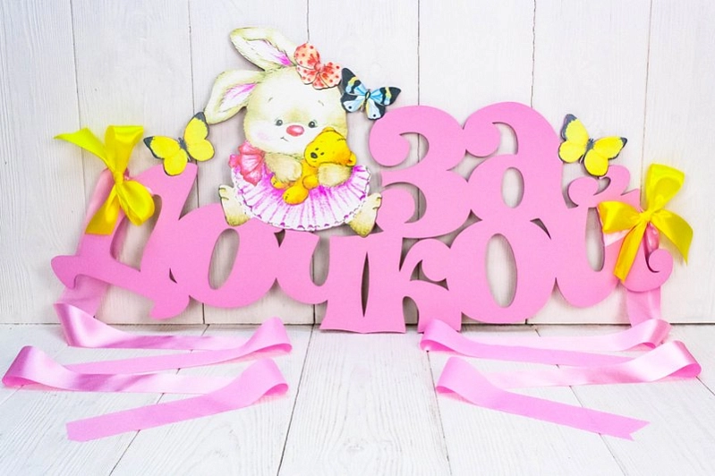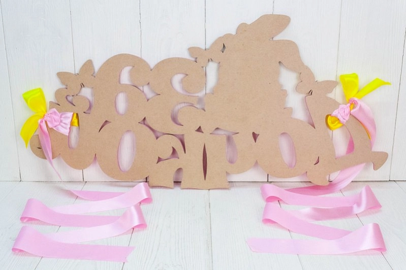 УкрЛ14-02-0516 Украшение на радиатор "За дочкой" с зайкой (73*37) МДФ, УФ печать, окраш., оформл., Розовый-желтый, 1 шт.