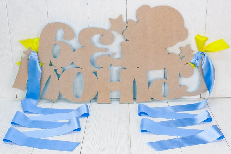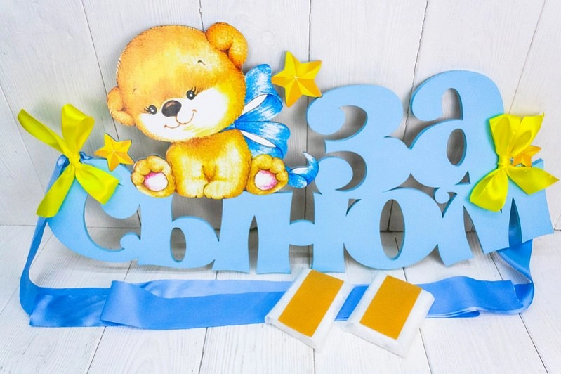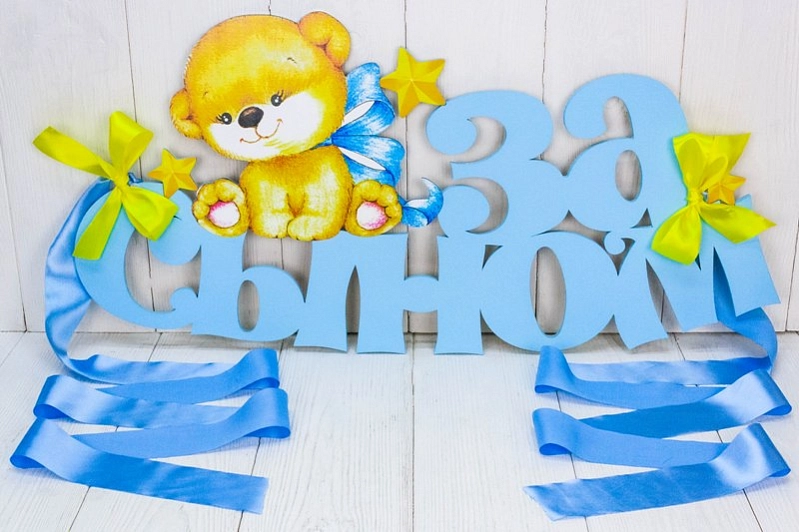 Украшение на радиатор "За сыном" с мишкой (73*37) МДФ, УФ печать, окраш., оформл., Голубой-желтый, 1 шт.