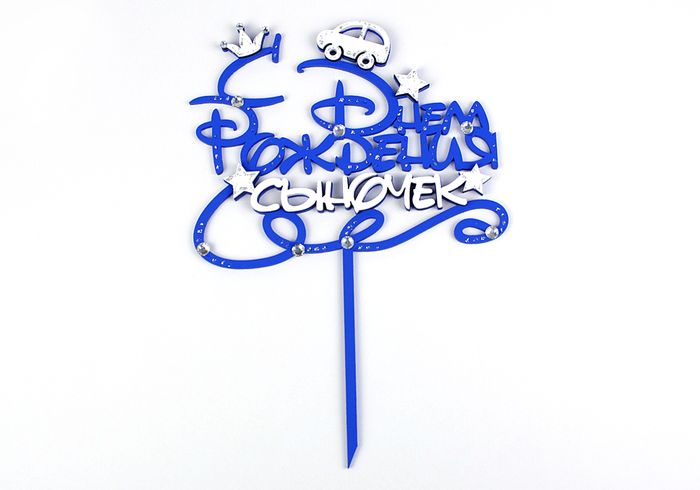 ТпТр02-05-0803 Надпись в торт "С Днём Рождения, сыночек" (шир.15,5см;выс.22см) МДФ-3мм, оформл., Синий-белый, 1 шт.
