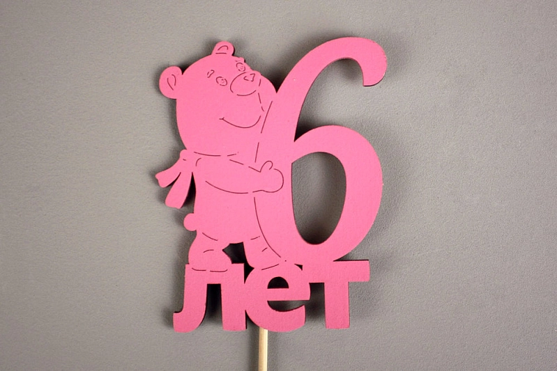 Топпер "6 лет" (9*30) МДФ, окрашен. на шпажке, Розовый, 1 шт.