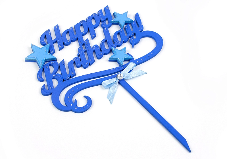 ТпТр05-05-0807 Топпер "Happy Birthday!" со звёздочками (шир.14см;выс.18,5см) МДФ-3мм, окрашен., оформл., Синий-голубой, 1 шт.