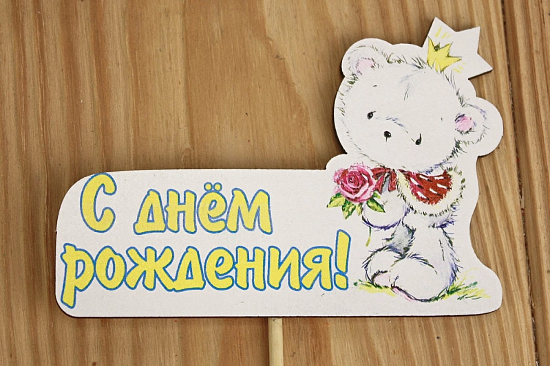 Тп255-02-0000 Топпер "С Днём рождения" для мальчика, на шпажке (9,5*28) МДФ 3мм, УФ печать, оформл., 1 шт.