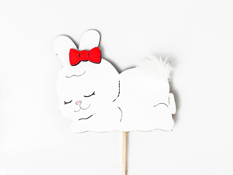 Топпер "Заинька" (8,5*29) МДФ 3мм, окрашен., оформл., на шпажке, Белый-красный, 1 шт.