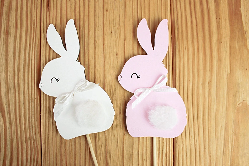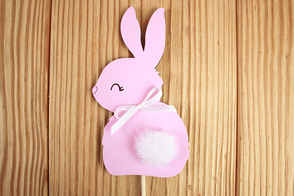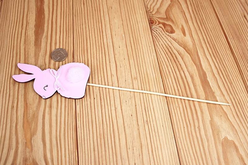 Топпер "Зайка" (6*30) МДФ 3мм, окрашен., оформл., на шпажке, Розовый пастель-белый, 1 шт.
