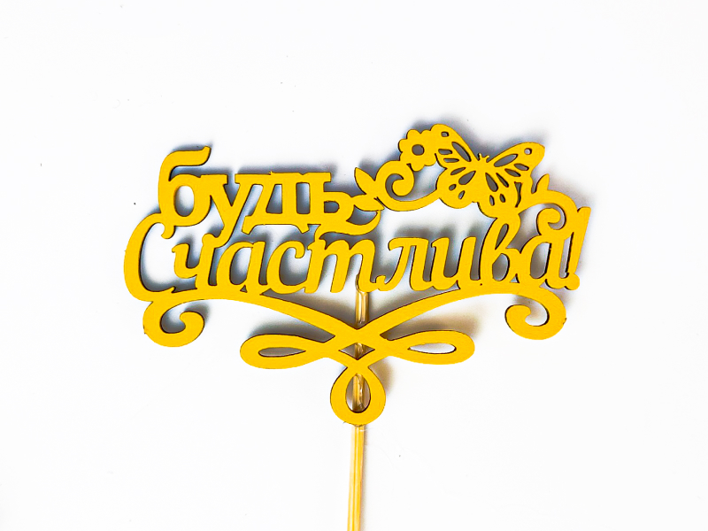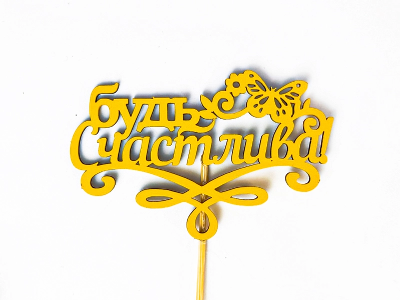 Топпер "Будь счастлива!" (10,5*26,5) МДФ, окрашен. на шпажке, Желтый, 1 шт.