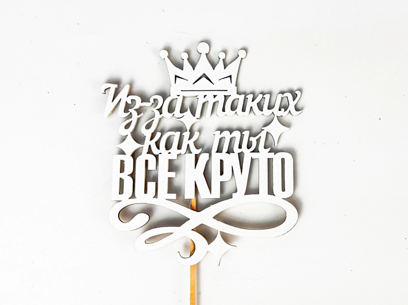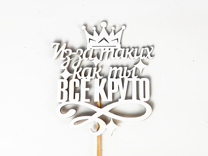 Топпер "Из-за таких как ты, всё круто!" (10,5*30,5) МДФ, окрашен. на шпажке, Белый, 1 шт.