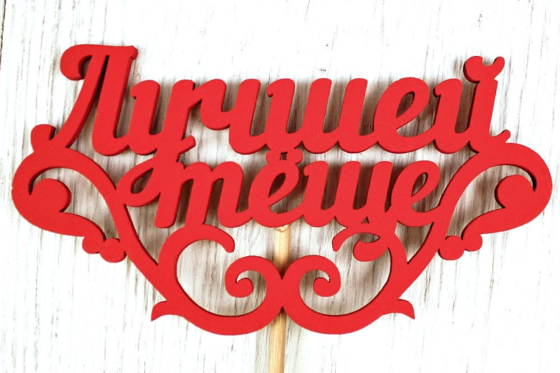 Тп373-04-0606 Топпер "Лучшей тёще" (11*27) МДФ 3мм, окрашен. на шпажке, Красный, 1 шт.