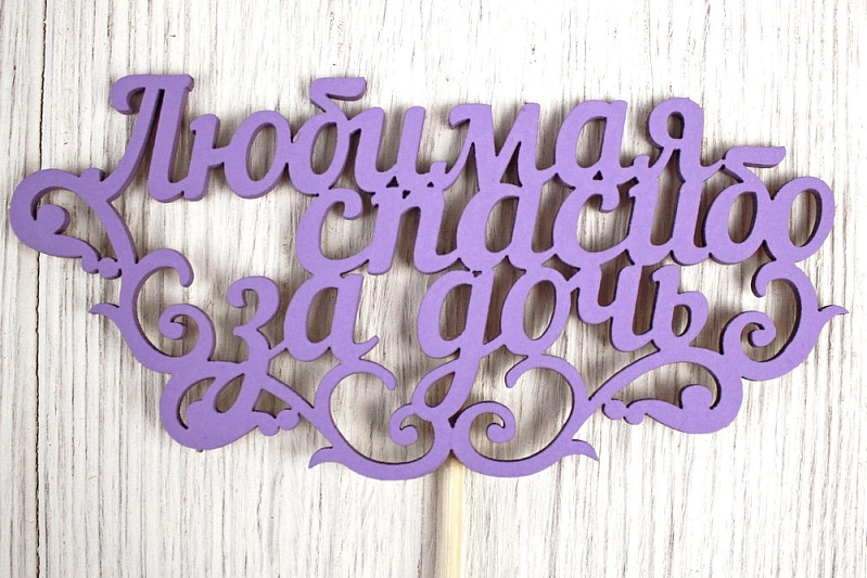 Топпер "Любимая, спасибо за дочь" (14*30) МДФ 3мм, окрашен. на шпажке, Сиреневый, Уп-10 шт.
