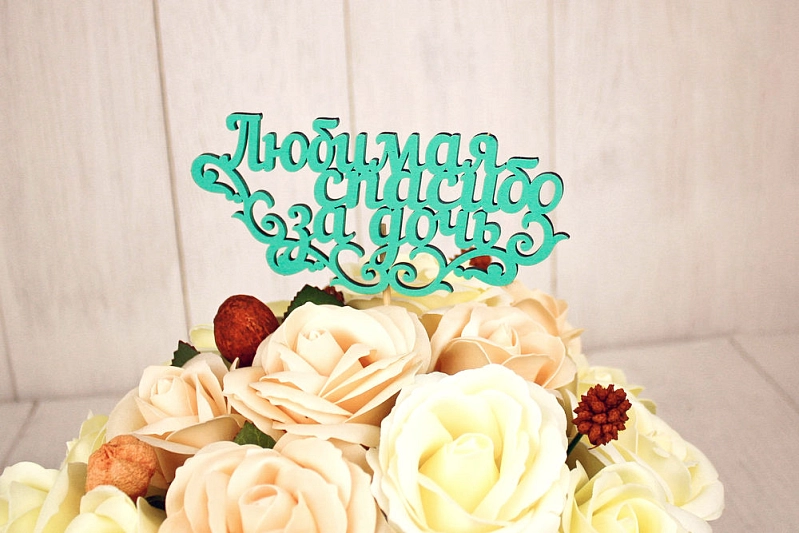 Топпер "Любимая, спасибо за дочь" (14*30) МДФ 3мм, окрашен. на шпажке, Тиффани, 1 шт.
