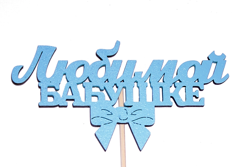 Топпер "Любимой бабушке" (12*28) МДФ 3мм, окрашен. на шпажке, Голубой, Уп-10 шт.