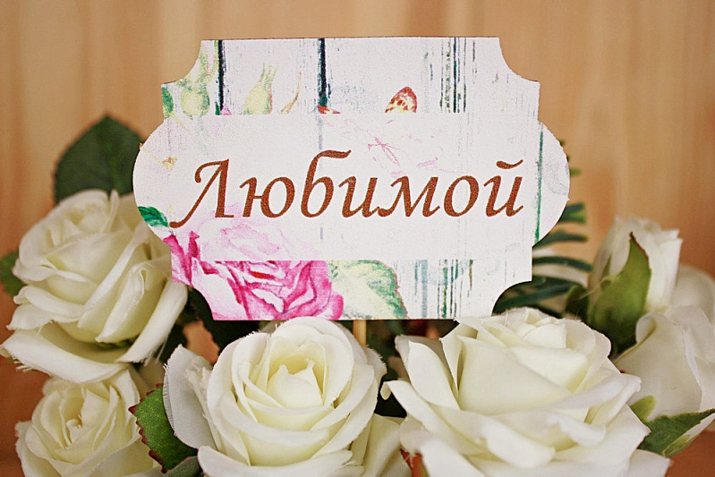 Топпер "Любимой" классика №1 (8*28) МДФ 3мм, УФ печать, на шпажке, Уп-10 шт.