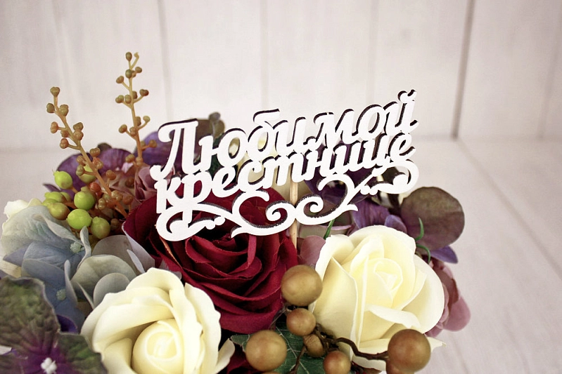 Топпер "Любимой крестнице" (11*27) МДФ 3мм, окрашен. на шпажке, Белый, Уп-10 шт.