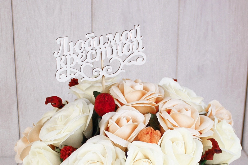 Топпер "Любимой крёстной" (11*27) МДФ 3мм, окрашен. на шпажке, Белый, 1 шт.