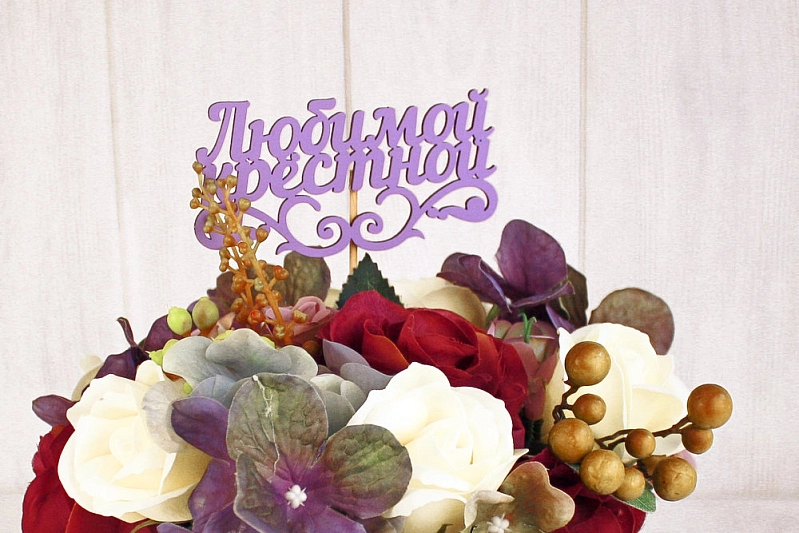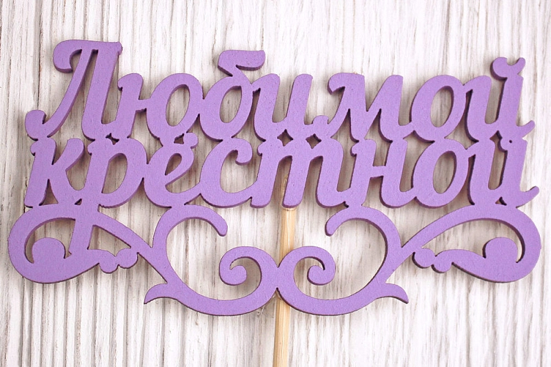 Топпер "Любимой крёстной" (11*27) МДФ 3мм, окрашен. на шпажке, Сиреневый, 1 шт.