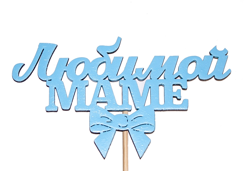 Топпер "Любимой маме" (12*28) МДФ 3мм, окрашен. на шпажке, Голубой, Уп-10 шт.