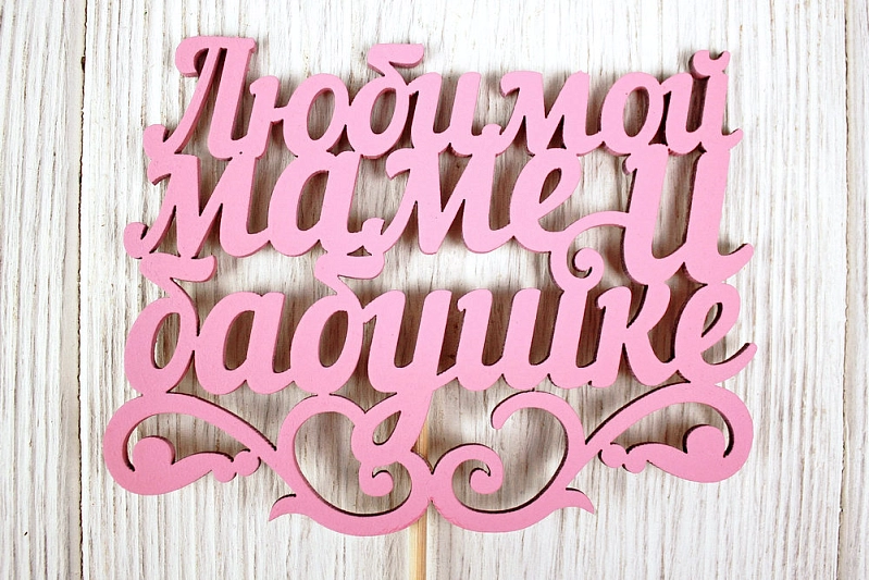 Топпер "Любимой маме и бабушке" (11,5*30) МДФ 3мм, окрашен. на шпажке, Розовый, Уп-10 шт.