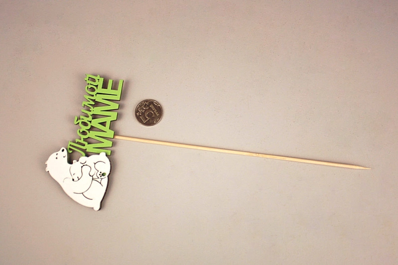 - Крепление: Топпер надежно закреплен на шпажке, что позволяет легко установить его в любой десерт.