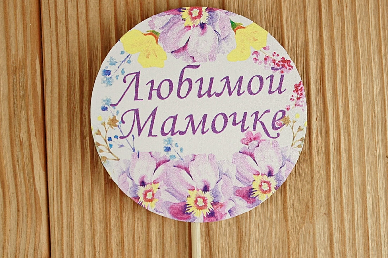 Топпер "Любимой мамочке" в круге (7,3*28) МДФ 3мм, УФ печать, на шпажке, 1 шт.