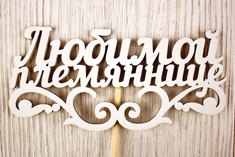 Топпер "Любимой племяннице" (11,5*27) МДФ 3мм, окрашен. на шпажке, Белый, Уп-10 шт.