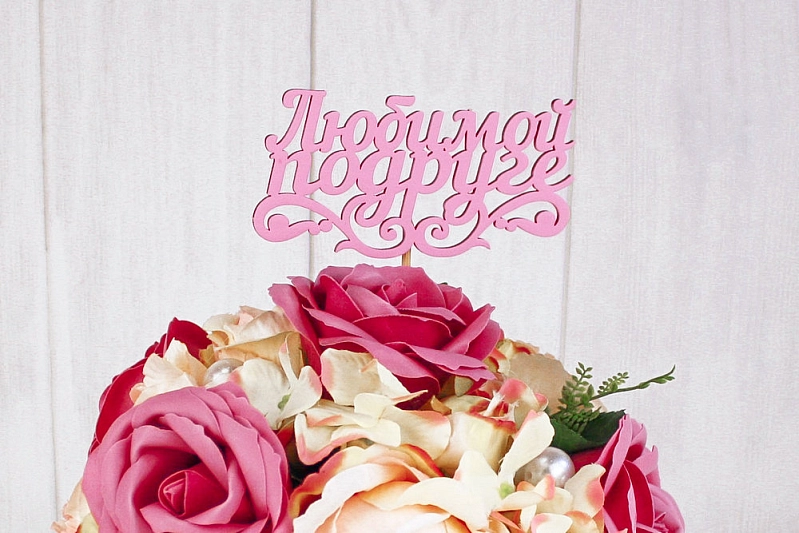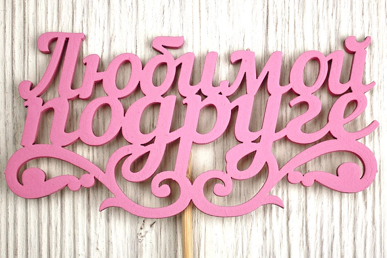 Топпер "Любимой подруге" (11*27) МДФ 3мм, окрашен. на шпажке, Розовый, 1 шт.