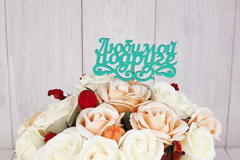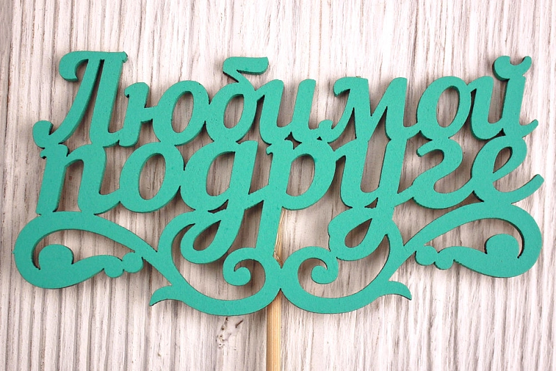 Топпер "Любимой подруге" (11*27) МДФ 3мм, окрашен. на шпажке, Тиффани, 1 шт.