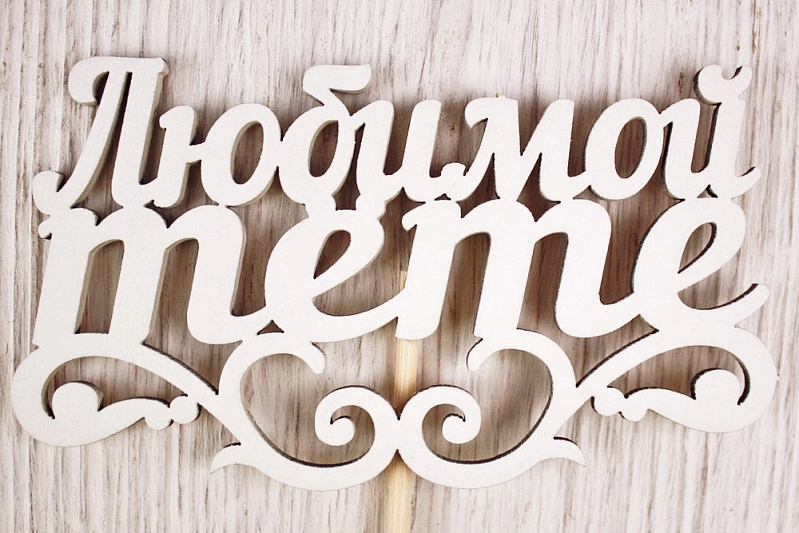 Топпер "Любимой тёте" (11*27) МДФ 3мм, окрашен. на шпажке, Белый, Уп-10 шт.