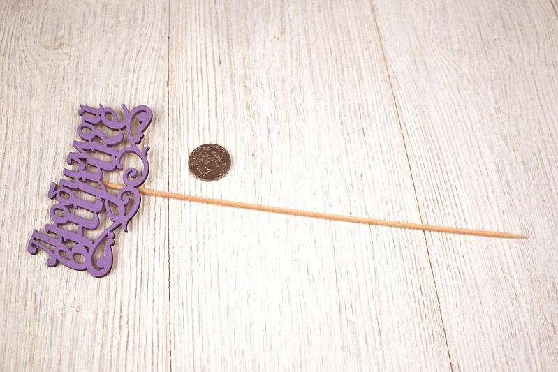 - Оформление: Топпер выполнен в нежной сиреневой гамме и аккуратно окрашен, что делает его визуально привлекательным. Крепление на шпажке позволяет легко и надежно закрепить топпер на десерте.