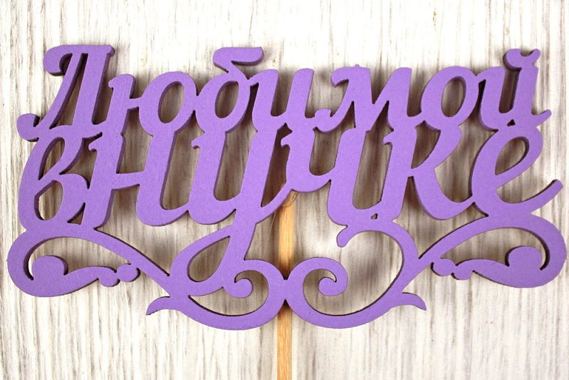 Топпер "Любимой внучке" (11*27) МДФ 3мм, окрашен. на шпажке, Сиреневый, Уп-10 шт.