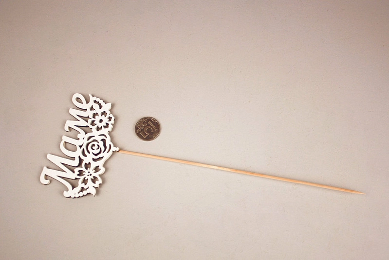Топпер "Маме" с цветами (10,5*30) МДФ 3мм, окрашен. на шпажке, Белый, Уп-10 шт.