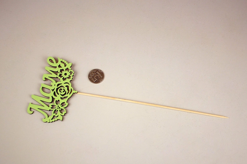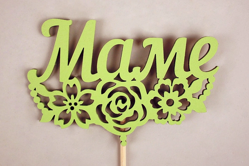 Топпер "Маме" с цветами (10,5*30) МДФ 3мм, окрашен. на шпажке, Салатовый, 1шт.