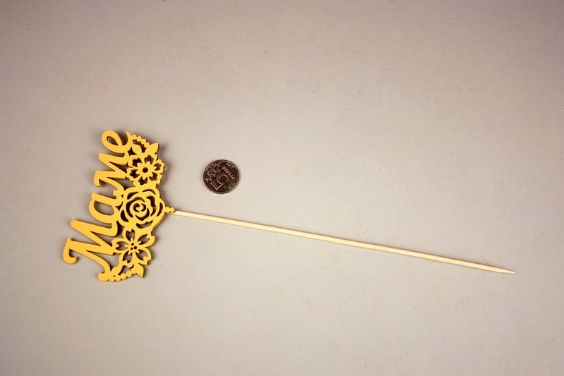 Топпер "Маме" с цветами (10,5*30) МДФ 3мм, окрашен. на шпажке, Желтый, Уп-10 шт.