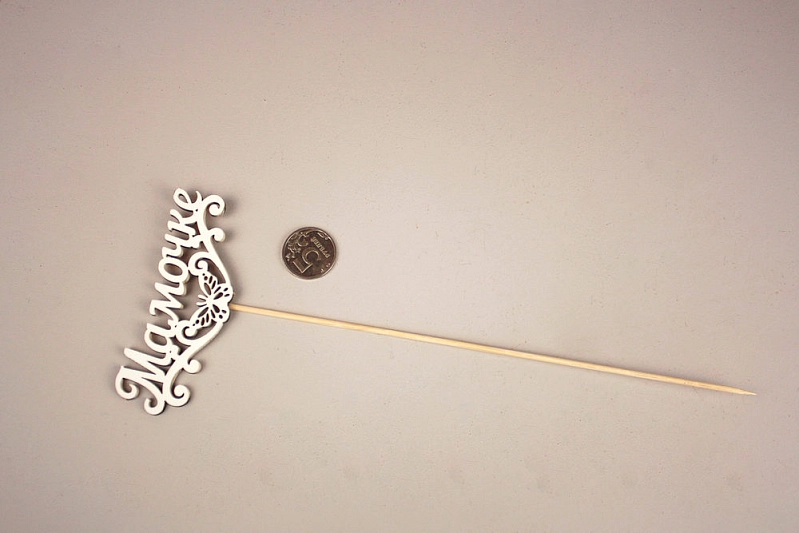 Топпер "Мамочке" с бабочкой (10,5*29) МДФ 3мм, окрашен. на шпажке, Белый, Уп-10 шт.