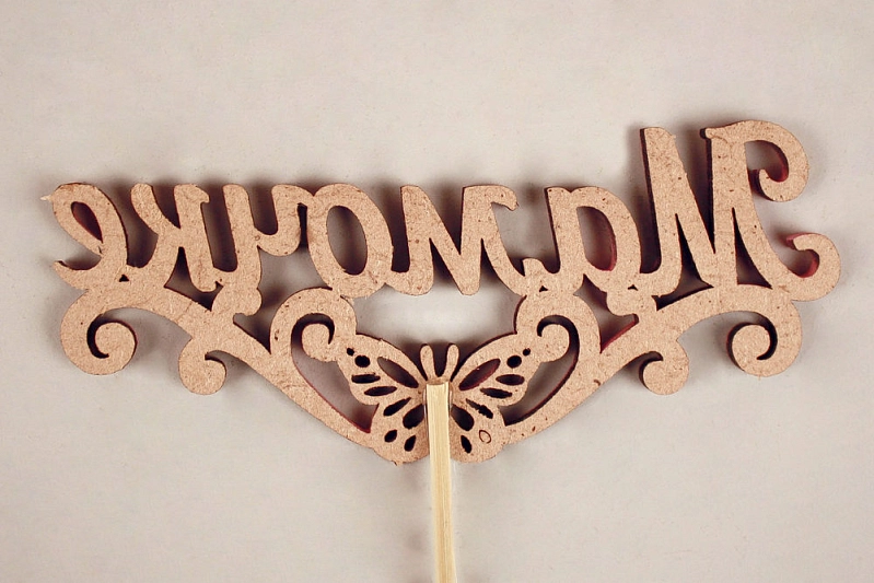 Тп411-04-0303Н Топпер "Мамочке" с бабочкой (10,5*29) МДФ 3мм, окрашен. на шпажке, Белый, Уп-10 шт.