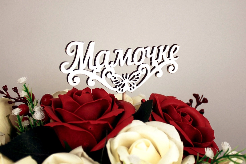 Ищете милый и трогательный декор для торта или капкейков? 🍰 Этот очаровательный топпер "Мамочке" с изящной бабочкой станет прекрасным украшением любого праздничного десерта! ✨