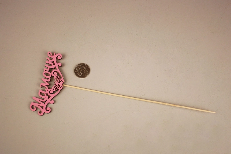 - Оформление: Топпер окрашен в нежный розовый цвет и надежно закреплен на шпажке, что позволяет легко установить его в десерт.